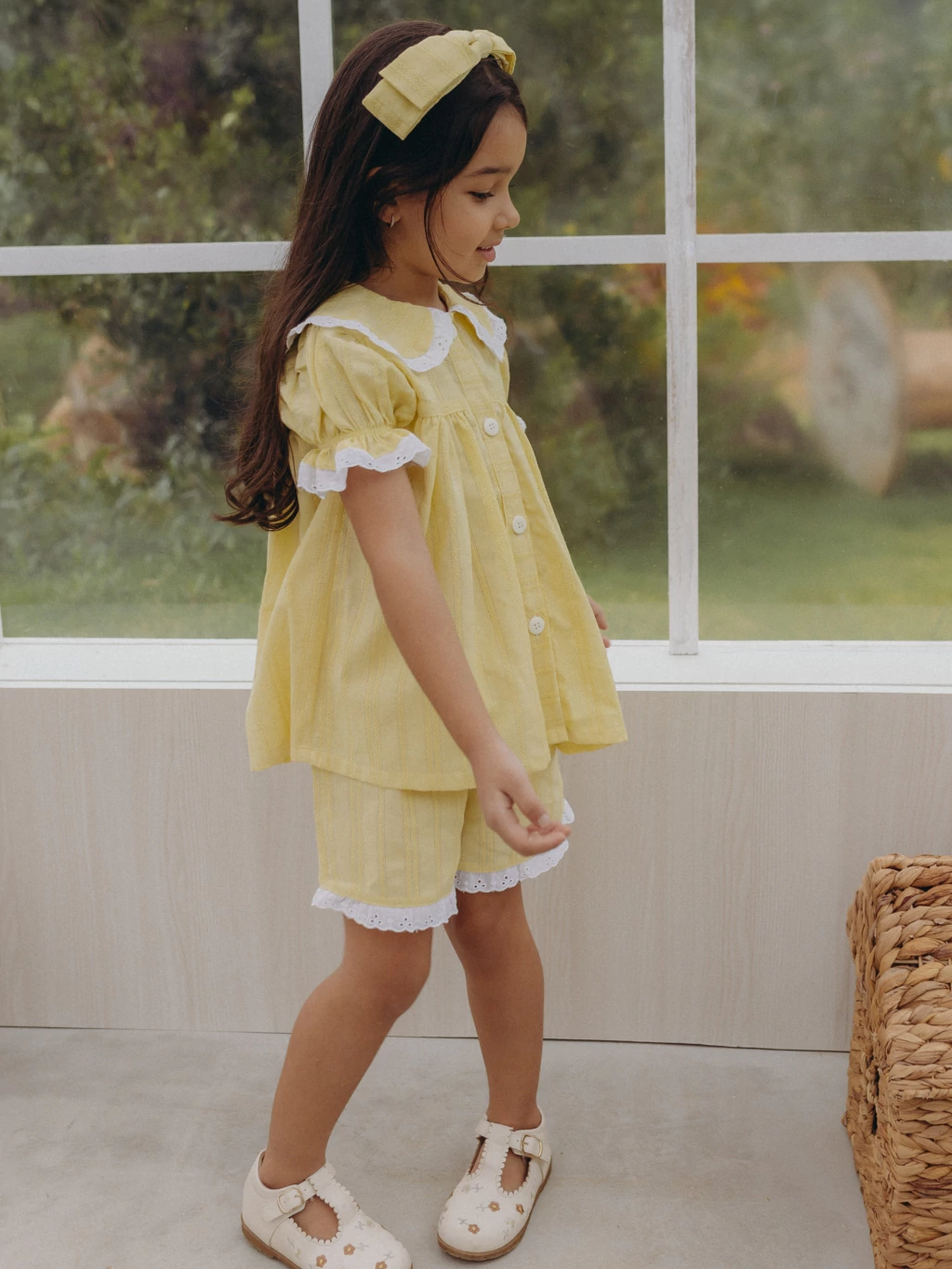 A batinha possui modelagem mais soltinha e confortável, e o short tem elástico na cintura para vestir perfeitamente a sua menina com leveza e praticidade.