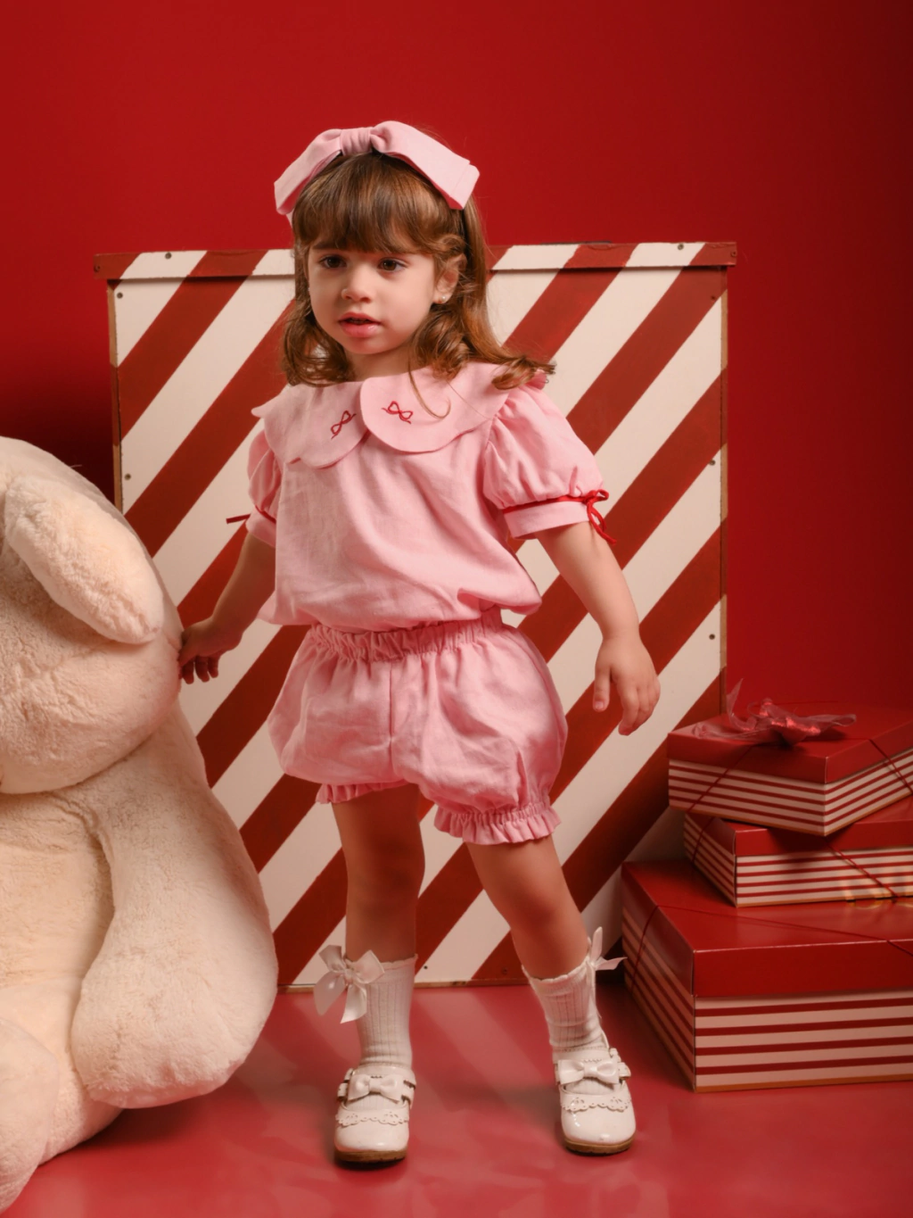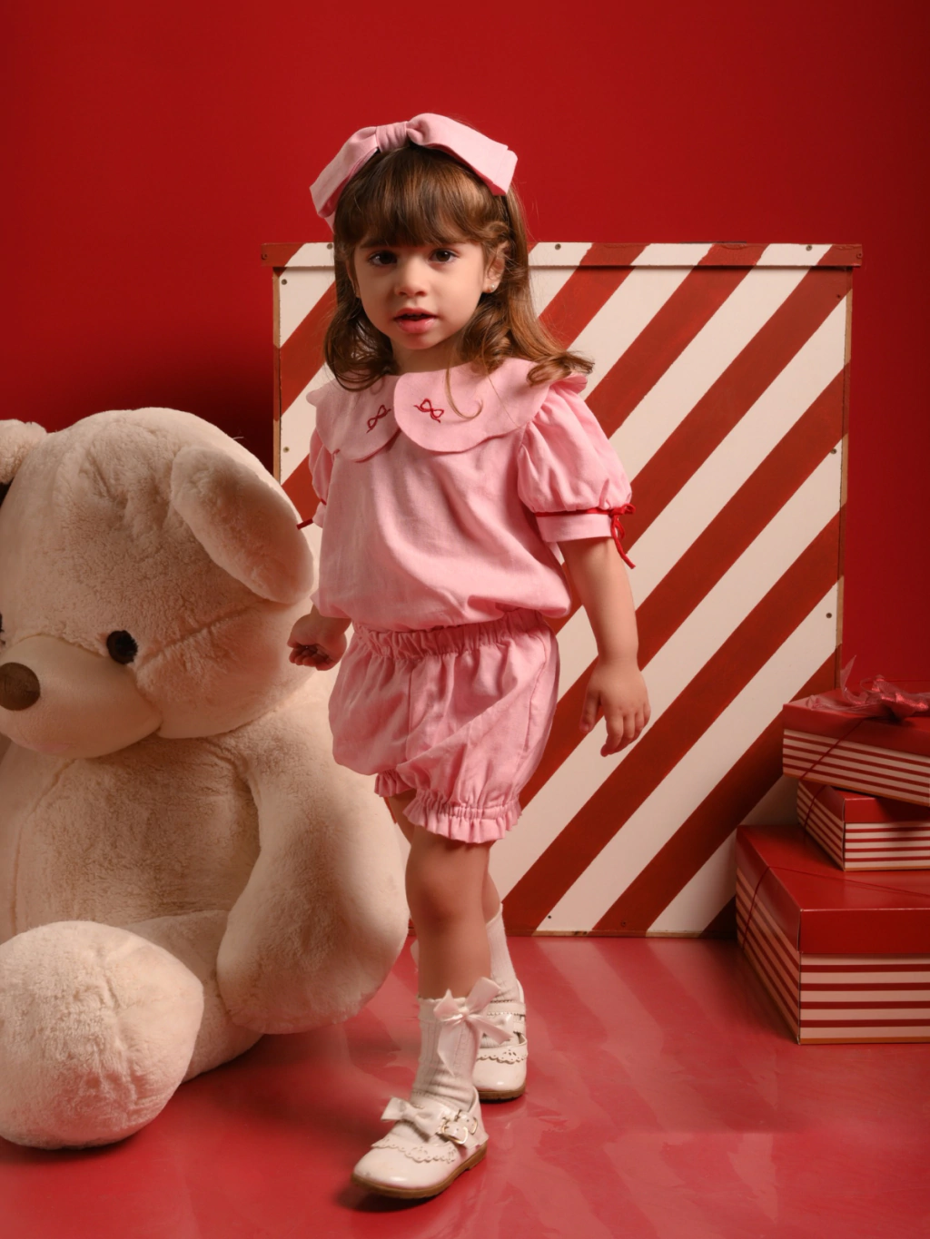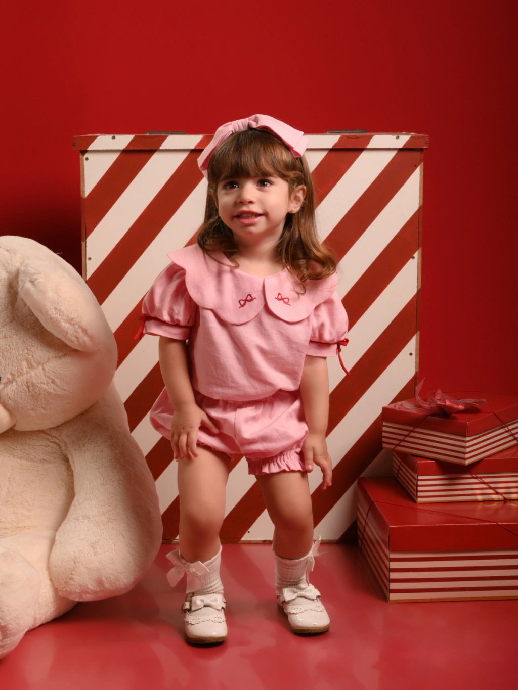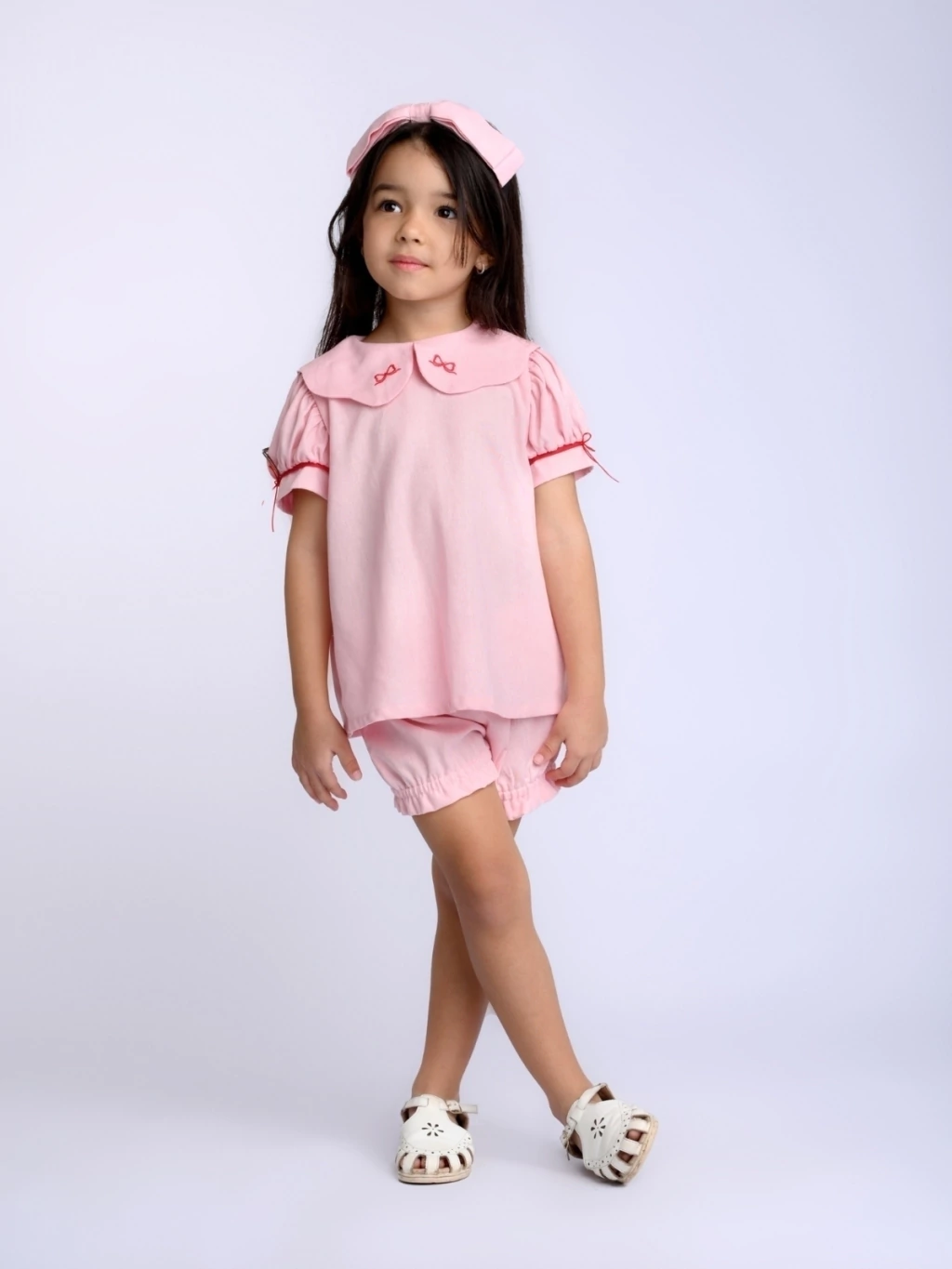 O Conjunto Lacinho é confeccionado em linho, com um delicado bordado de lacinho, trazendo todo o charme da peça. As mangas bufantes com detalhes em vermelho adicionam um toque especial, tornando este conjunto irresistível. Confortável e elegante, ele deixará sua filha parecendo uma verdadeira boneca.