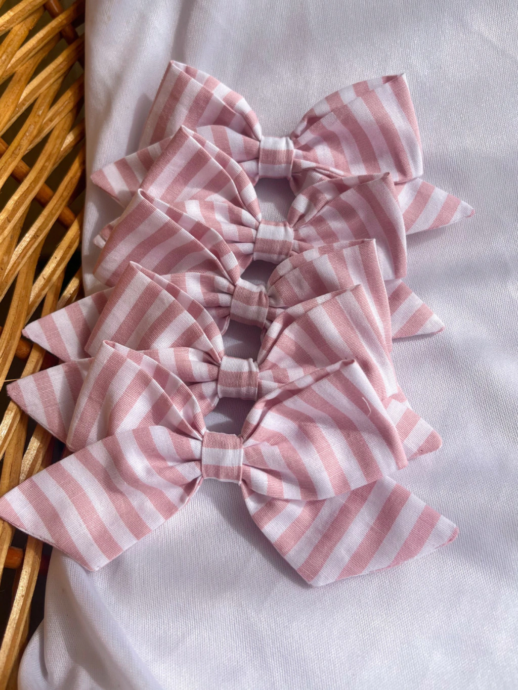Nossos laços são confeccionados com o mesmo tecido da peça, complementando o look da sua princesa com um acessório indispensável que a deixará ainda mais linda. Oferecemos duas opções: laços com meia de seda para bebês de aproximadamente 6 cm a 7 cm e para as meninas maiores, temos opção de bico de pato com laço de aproximadamente 8 cm a 10 cm. Escolha o modelo que melhor se adequar ao estilo da sua princesa.