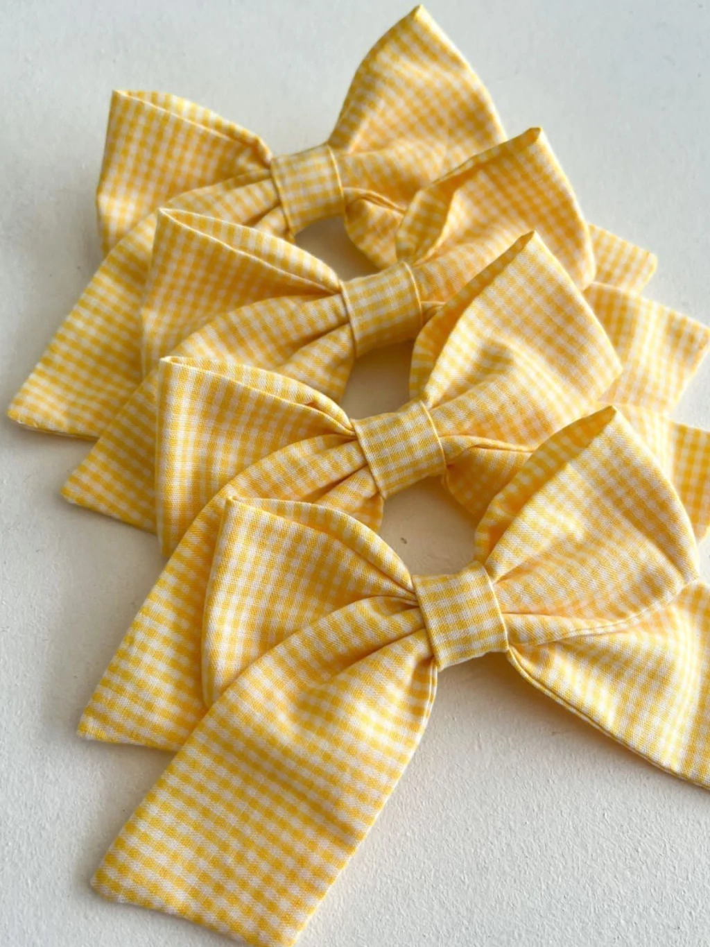 Nossos laços são confeccionados com o mesmo tecido da peça, complementando o look da sua princesa com um acessório indispensável que a deixará ainda mais linda. Oferecemos duas opções: laços com meia de seda para bebês de aproximadamente 6 cm a 7 cm e para as meninas maiores, temos opção de bico de pato com laço de aproximadamente 8 cm a 10 cm. Escolha o modelo que melhor se adequar ao estilo da sua princesa.