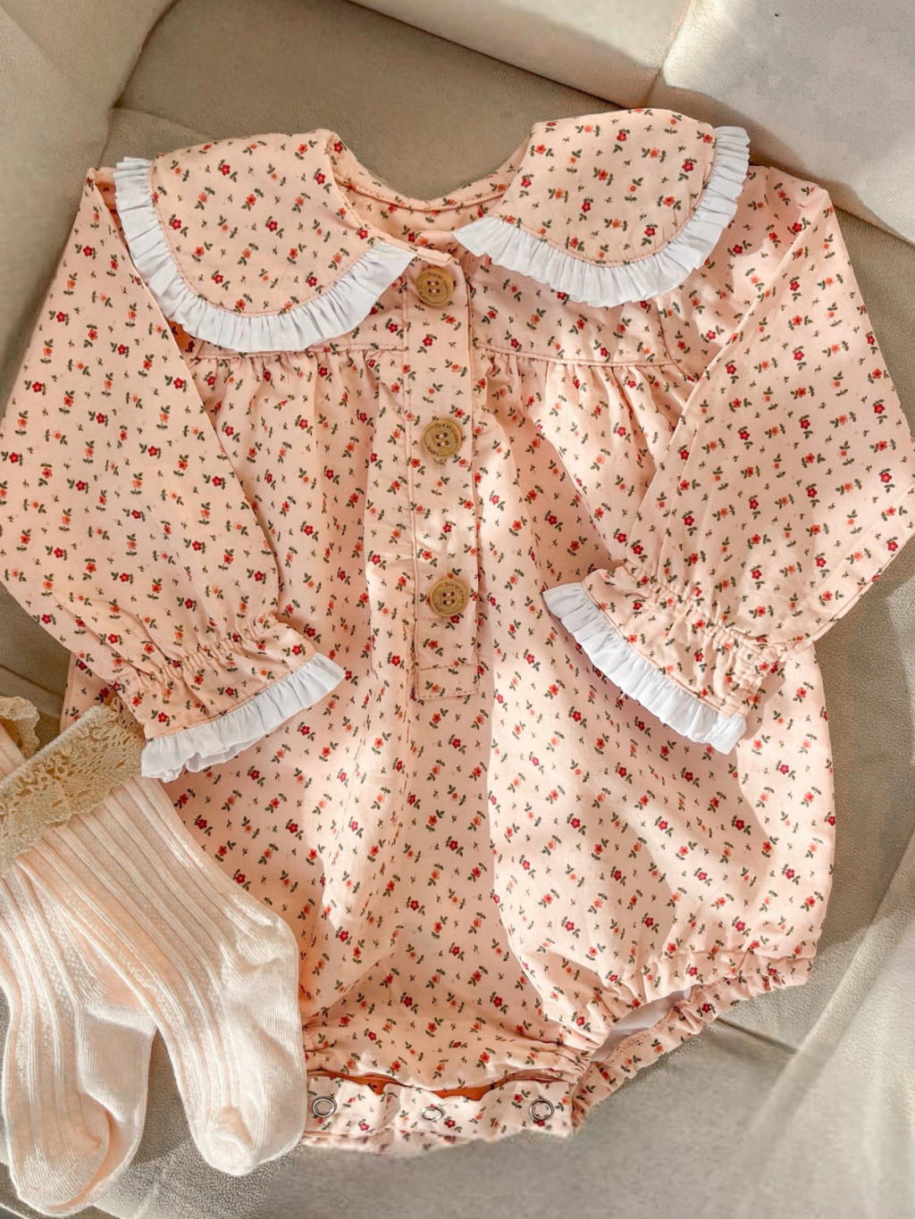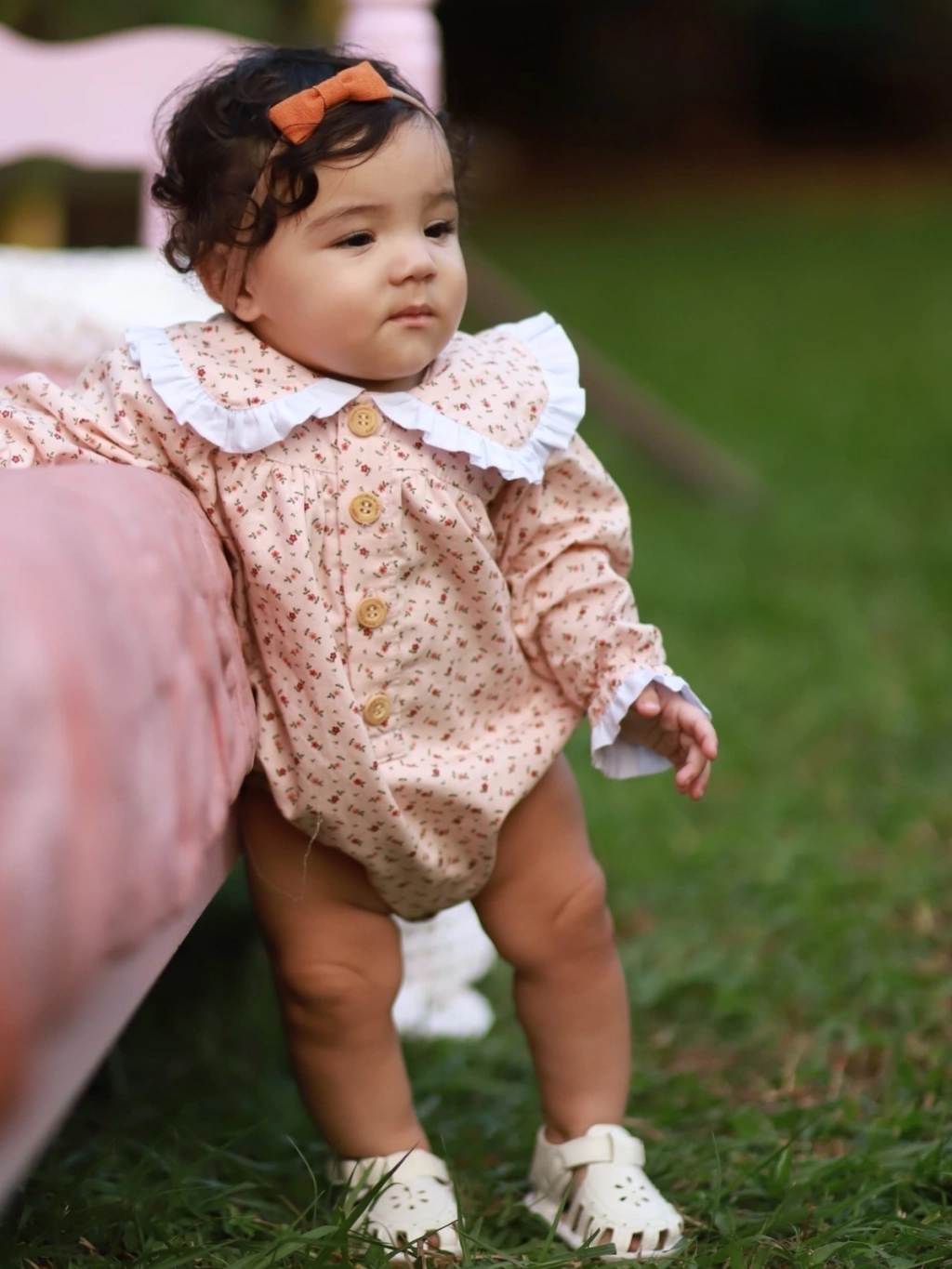 o romper Flora um item essencial no guarda-roupa da sua pequena, é um clássico atemporal com uma estampa floral delicada, golinha e detalhes no punho. Com abotoamento frontal em botões de madeira natural, este romper de manga longa proporciona conforto e delicadeza, permitindo que sua menina desfrute plenamente da sua infância. Adquira agora e proporcione à sua princesa o melhor dessa fase.