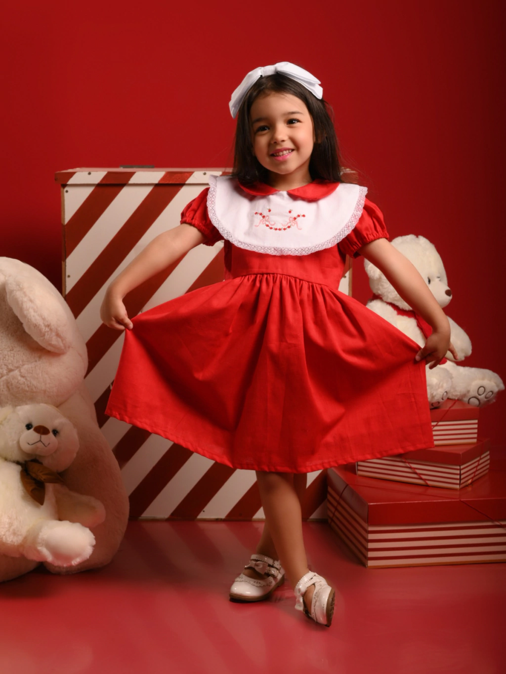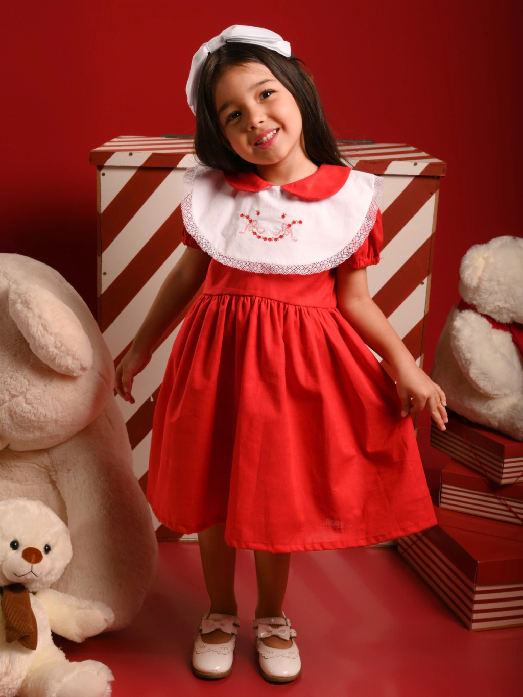 O Vestido Eloise é pura delicadeza e encanto, digno de uma verdadeira boneca. Rico em detalhes, ele traz uma gola dupla lindamente bordada com toques de renda de algodão, além de charmosas manguinhas bufantes que completam o visual romântico. Confeccionado em 100% algodão Flame, este vestido oferece todo o conforto que sua filha merece, sem perder o ar sofisticado. Ideal para ocasiões especiais, ele evoca a pureza da infância e cria memórias inesquecíveis. Deixe sua pequena viver momentos mágicos com beleza e conforto. Compre agora e transforme cada momento em uma celebração!